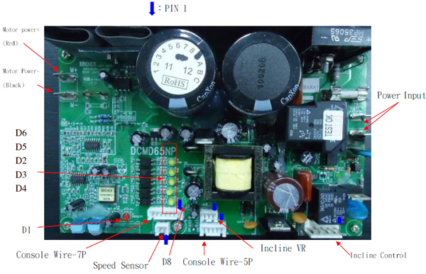 No speed signal from speed sensor for more than 6 seconds when treadmill is started, all window displays will be off, all output will stop, and the display with show SPEED ERROR.