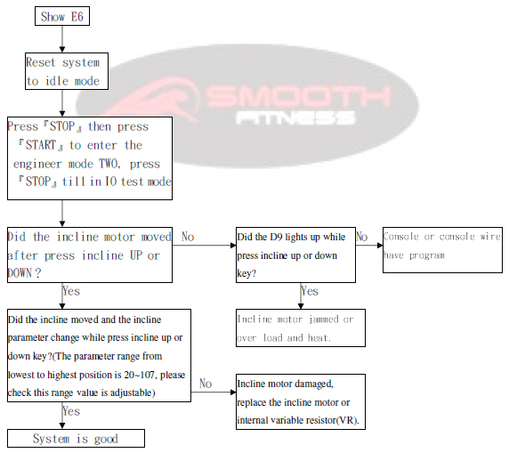 The incline AD parameter did not change over 7 seconds while operating the incline, incline function can not be use but other functions are normal to use.