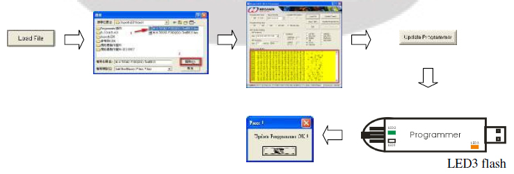 5.2.4.Load burning code and update programmer click Load File Select and open the burning code click Update Programmer update ok