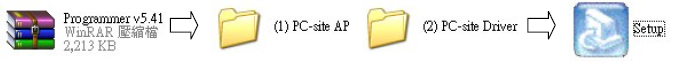 5.1.1.Un-zip the zipped file Programmer v5.41 to (1) PC-site AP (2) PC-site Driver, entry the (1) PC-site AP document then execute and install the Setup.