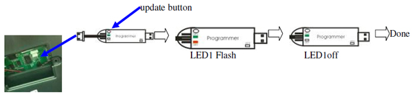 5.3.1.Open the small cover where on the back of console set->connect the programmer to console update port->press update button where on the programmer->programmer LED1 off after flash -> done