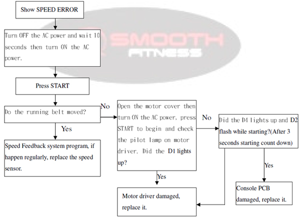 Can not receive signal from speed sensor over 6 seconds while workout, all windows display will off, all output will stop, and show SPEED ERROR.